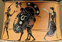 Ο Αίας ο Τελαμώνιος υπό την προστασία του Ερμή και της Αθηνάς μεταφέρει το σώμα του νεκρού Αχιλλέα πίσω στο στρατόπεδο των Ελλήνων. Ζωγράφος του Αντιμένη