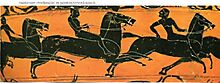 Αρχαίος Έλληνας Ολυμπιονίκης, από την Ηλεία Πελοποννήσου, στον Κέλη (Αγώνας ιππασίας στο οποίο οι διαγωνιζώμενοι συμμετείχαν απλώς ιππεύοντας το άλογο τους) στην 176η Ολυμπιάδα το 76 π.Χ.