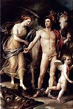 Περσέας και Ανδρομέδα Ένας δράκοντας κρατάει την Ανδρομέδα δεμένη σε έναν βράχο, ως τιμωρία εξαιτίας των γονιών της, οι οποίοι καυχήθηκαν ότι η κόρη τους είναι πιο όμορφη ακόμη και από της νηρηίδες. Ο Περσέας, ο οποίος έχει μόλις νικήσει τη μέδουσα και σέρνει το κεφάλι της ως λάφυρο απολιθώνει το δράκοντα και σώζει την όμορφη κοπέλα. Οι δυο τους ερωτευμένοι γυρίζουν στη Σκιάθο όπου αντιμετωπίζουν τον άνδρα της Ανδρομέδας. Ο Περσέας όμως και πάλι χρησιμοποιώντας το κεφάλι τον κατατροπώνει υπερασπιζόμενος τον έρωτά του για την αγαπημένη του. Ένας έρωτας που αντιμετώπισε κάθε εμπόδιο και βγήκε νικητής.