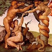 Η Λίλιθ με την μορφή του Φιδιού, για να εκδικηθεί την Εύα και τον Αδάμ, τους δελεάζει με τον Καρπό του Δέντρου της Γνώσης.