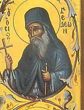 Γεννήθηκε στο χωριό Κάπουρνα της Δημητριάδος και κατά κόσμον ονομαζόταν Νικόλαος. Δώδεκα χρονών, με την οικογένειά του ήλθε στο χωριό Γιερμή και από 'κει στο Βελεστίνο. Τον άρπαξε όμως κάποιος Τούρκος και τον εξισλάμισε με το όνομα Ιμπραήμ. Μετά από δυο μήνες, ο Νικόλαος, κατόρθωσε και δραπέτευσε και επανήλθε στην οικογένειά του. Ο πατέρας του τον φυγάδευσε στο χωριό Κεραμίδι, όπου κοντά σε κάποιους οικοδόμους πήγε στην Κρήτη. Εκεί εξομολογήθηκε σε κάποιο Ιερέα και βρήκε άσυλο στο εξωκλήσι του. Μετά τον θάνατο του ιερέα, ο Νικόλαος έφυγε για το Άγιον Όρος. Εκεί πάλι εξομολογήθηκε, έλαβε των αχράντων μυστηρίων και στη Μονή Καρακάλου, εκάρη μοναχός με το όνομα Γεδεών. Οι πατέρες της Μονής του ανέθεσαν το διακόνημα του Εκκλησιάρχου. Κατέληξε μοναχός, κάτι για το οποίο θυσιάστηκε, αφού οι Τούρκοι τον συνέλαβαν, βασάνισαν οιχτρά και σκότωσαν. Παρέδωσε το πνεύμα του το 1818.